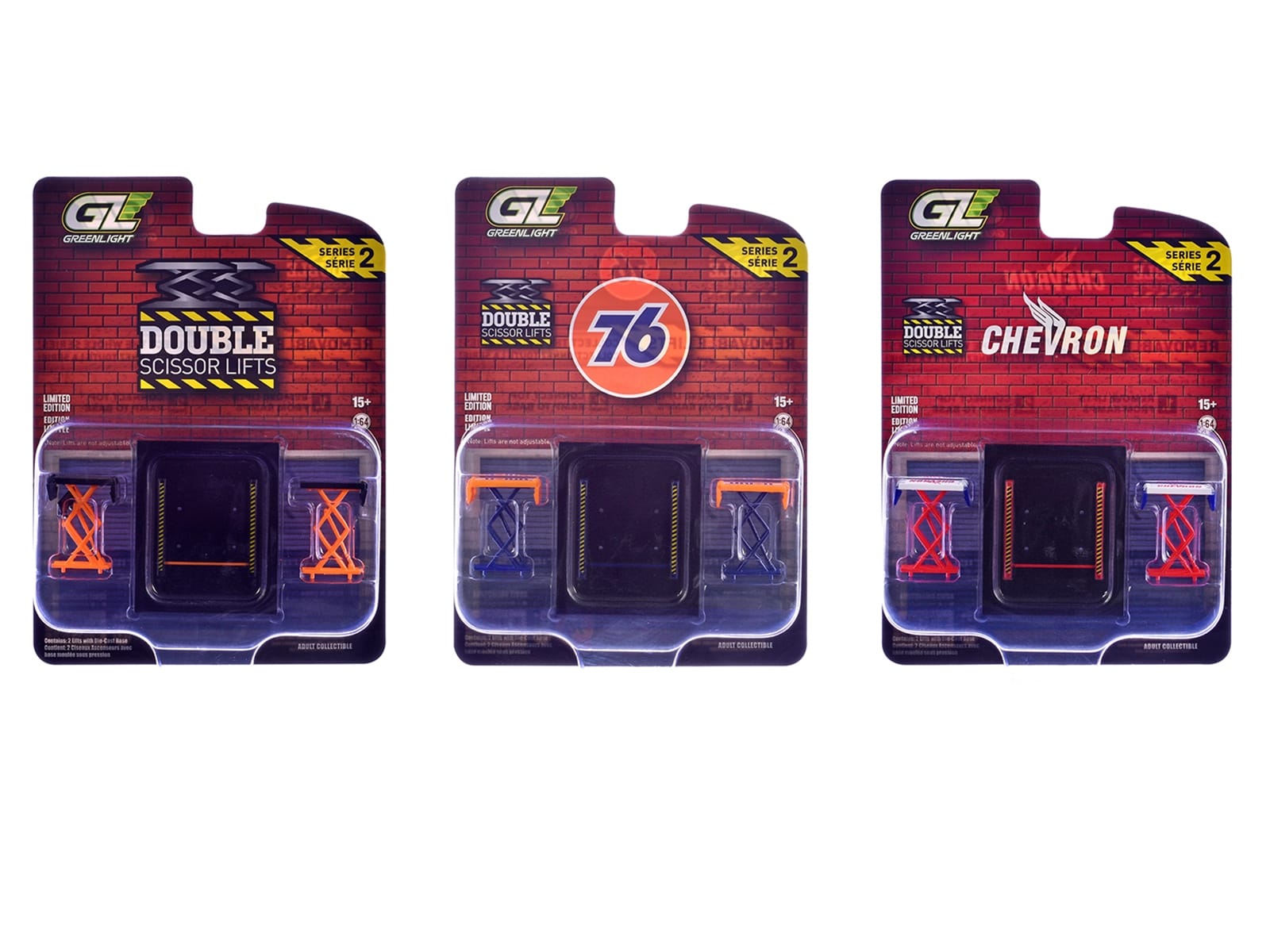 Automotive “Double Scissor Lifts” Series #2 Set of 3 pieces 1/64 Diecast Models by Greenlight