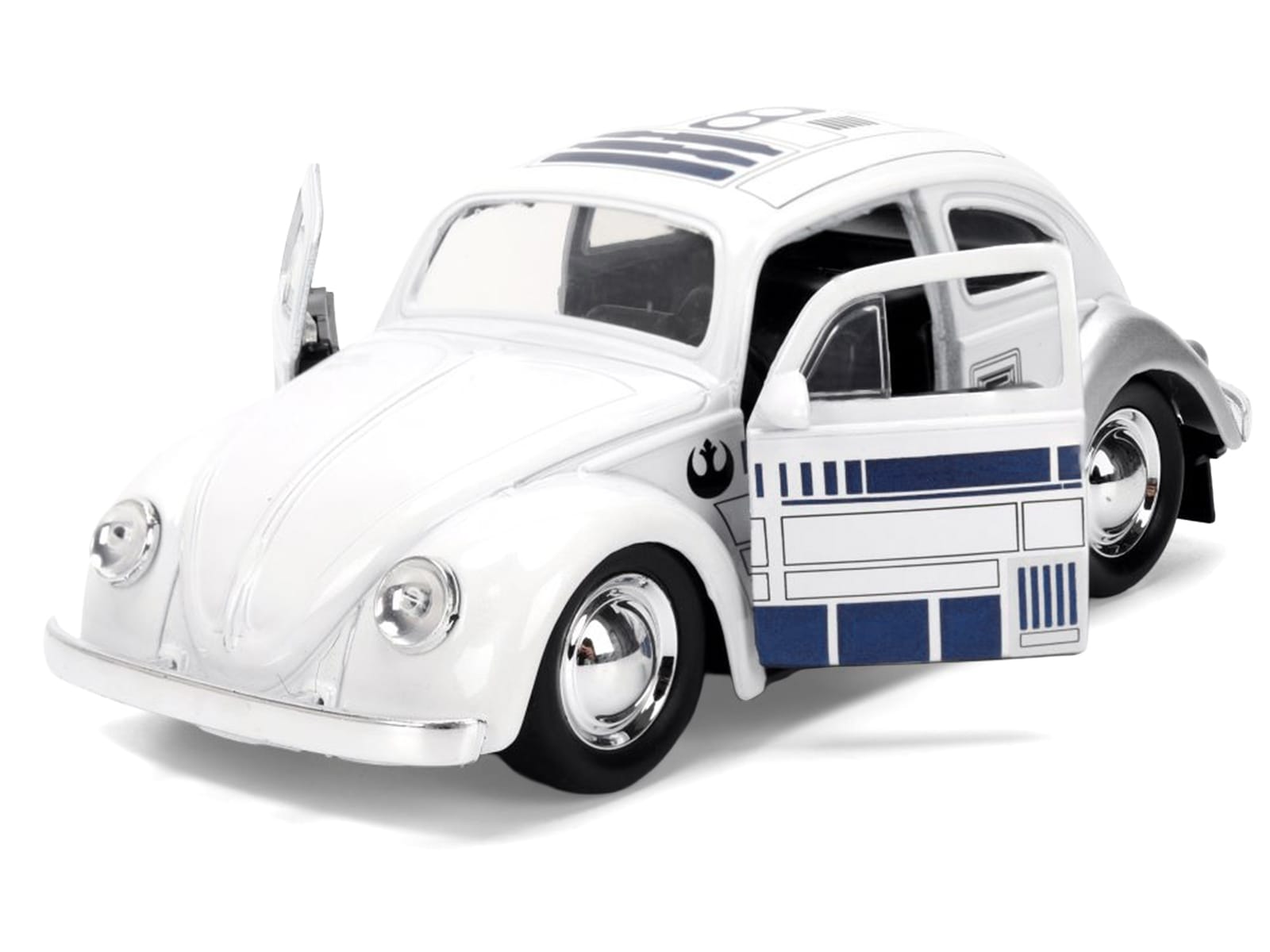 • Brand new 1/32 scale diecast car model of 1959 Volkswagen Beetle “R2-D2” Livery White with Graphics “Star Wars” Franchise “Hollywood Rides” Series die cast model car by Jada.