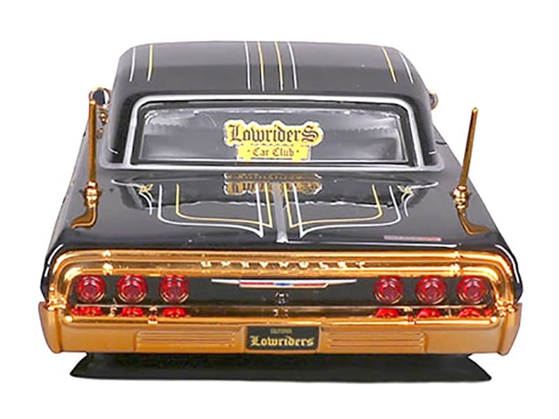 - Brand new 1/26 scale diecast car model of 1964 Chevrolet Impala SS Lowrider Black Metallic with Gold Graphics and Gray Interior “Lowriders” “Maisto Design” Series die cast model car by Maisto.