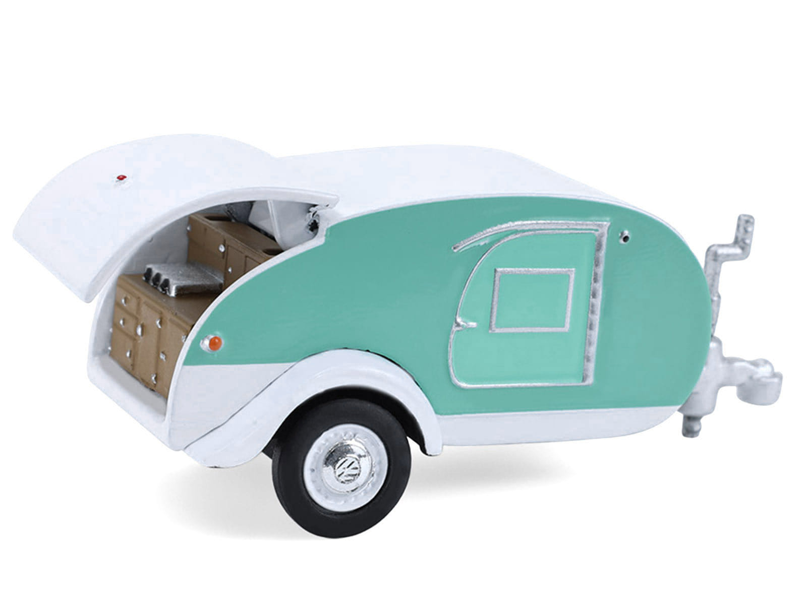 - Brand new 1/64 scale diecast car models of 1971 Volkswagen Type 2 Van Seafoam Green and White with Surfboards and Teardrop Trailer “Hitch & Tow” Series 33 die cast model cars by Greenlight.