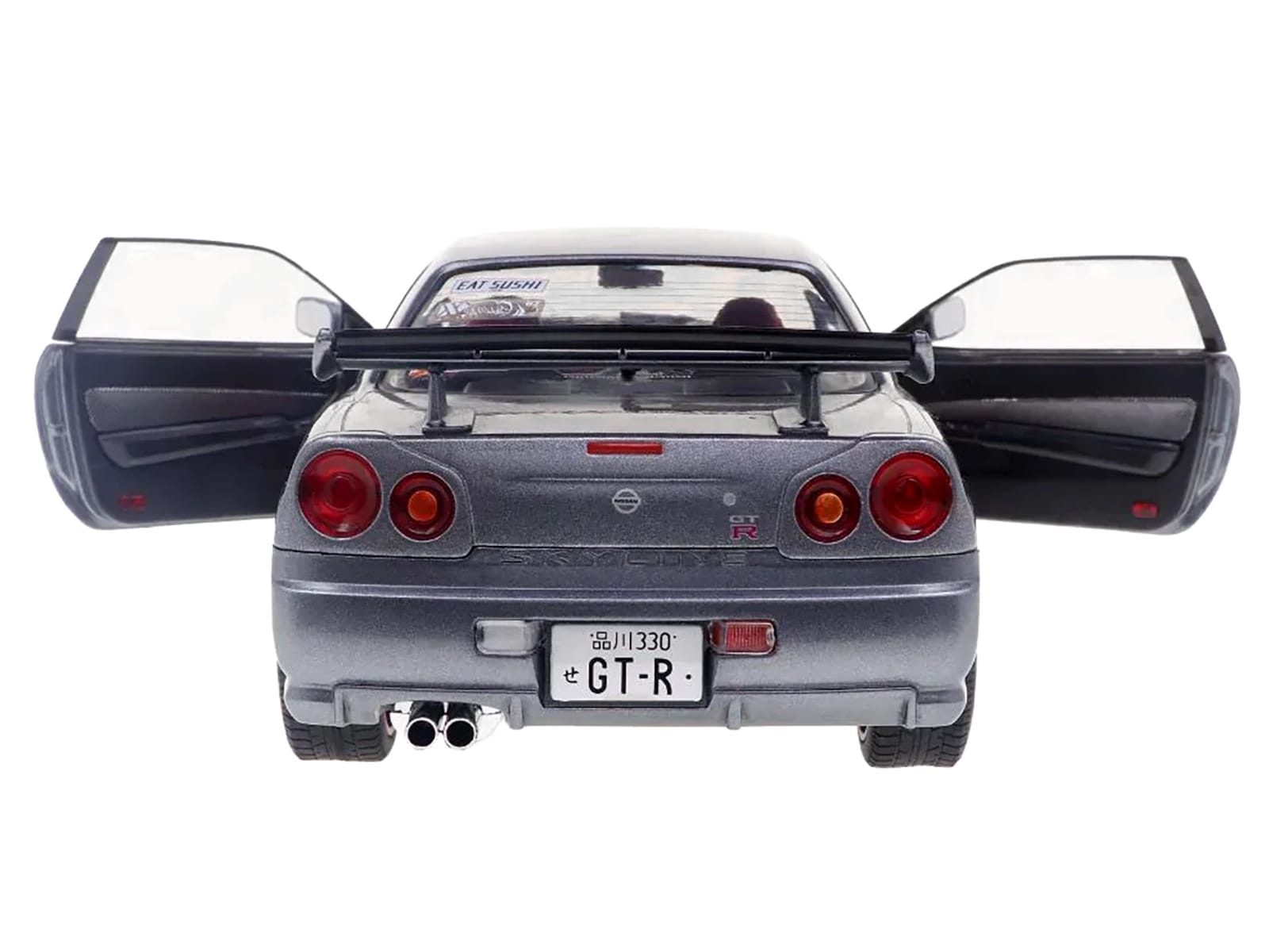- Brand new 1/18 scale diecast car model of 1999 Nissan Skyline GT-R (R34) RHD (Right Hand Drive) Silver Metallic with Purple Wheels die cast model car by Solido.