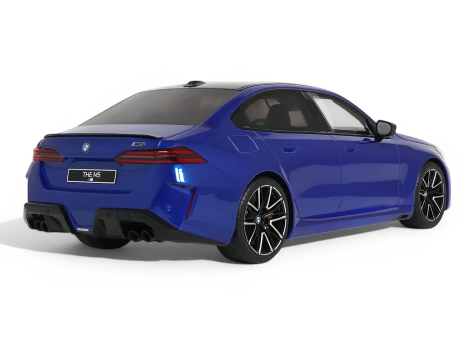 - Brand new 1/18 scale car model of 2024 BMW M5 (G90) Marina Bay Blue Metallic with Black Top model car by GT Spirit.