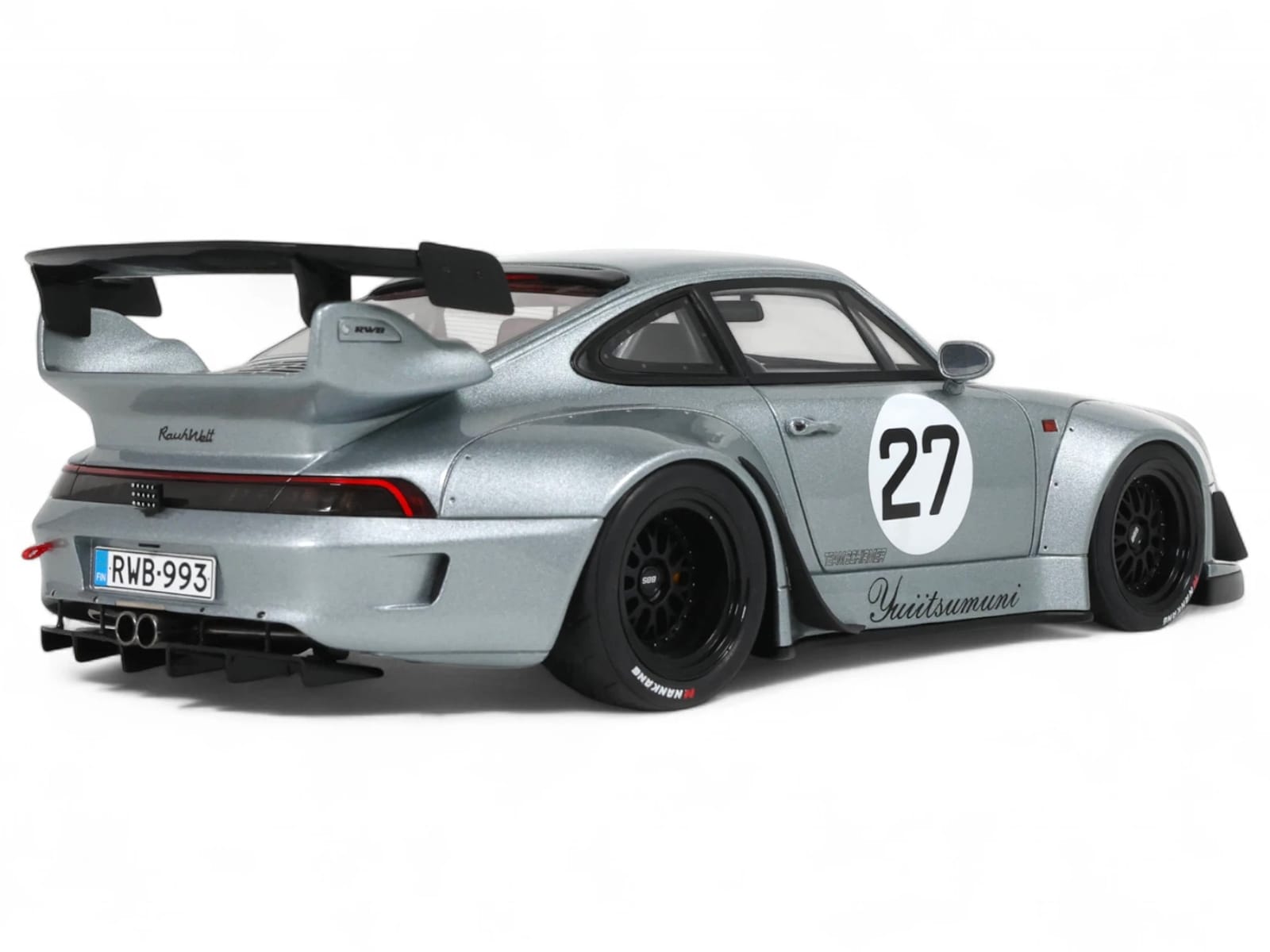 • Brand new 1/18 scale car model of 2024 RWB Yuiitsumuni #27 Silver Metallic model car by GT Spirit.