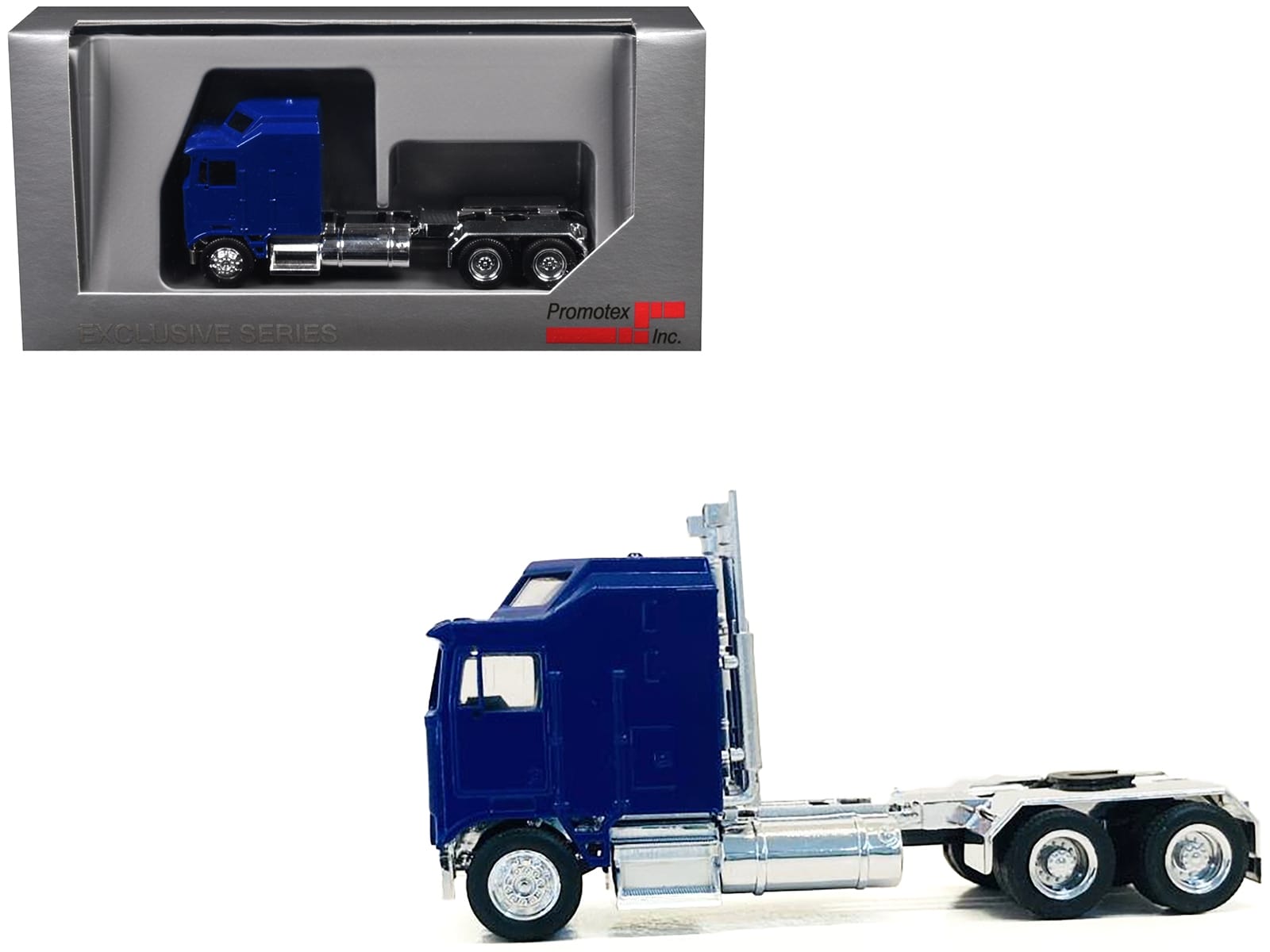 - Brand new 1/87 (HO) scale plastic car model of Kenworth K100 with 1-Bar Grill and X-Long Chrome Chassis Blue plastic model car by Promotex.
