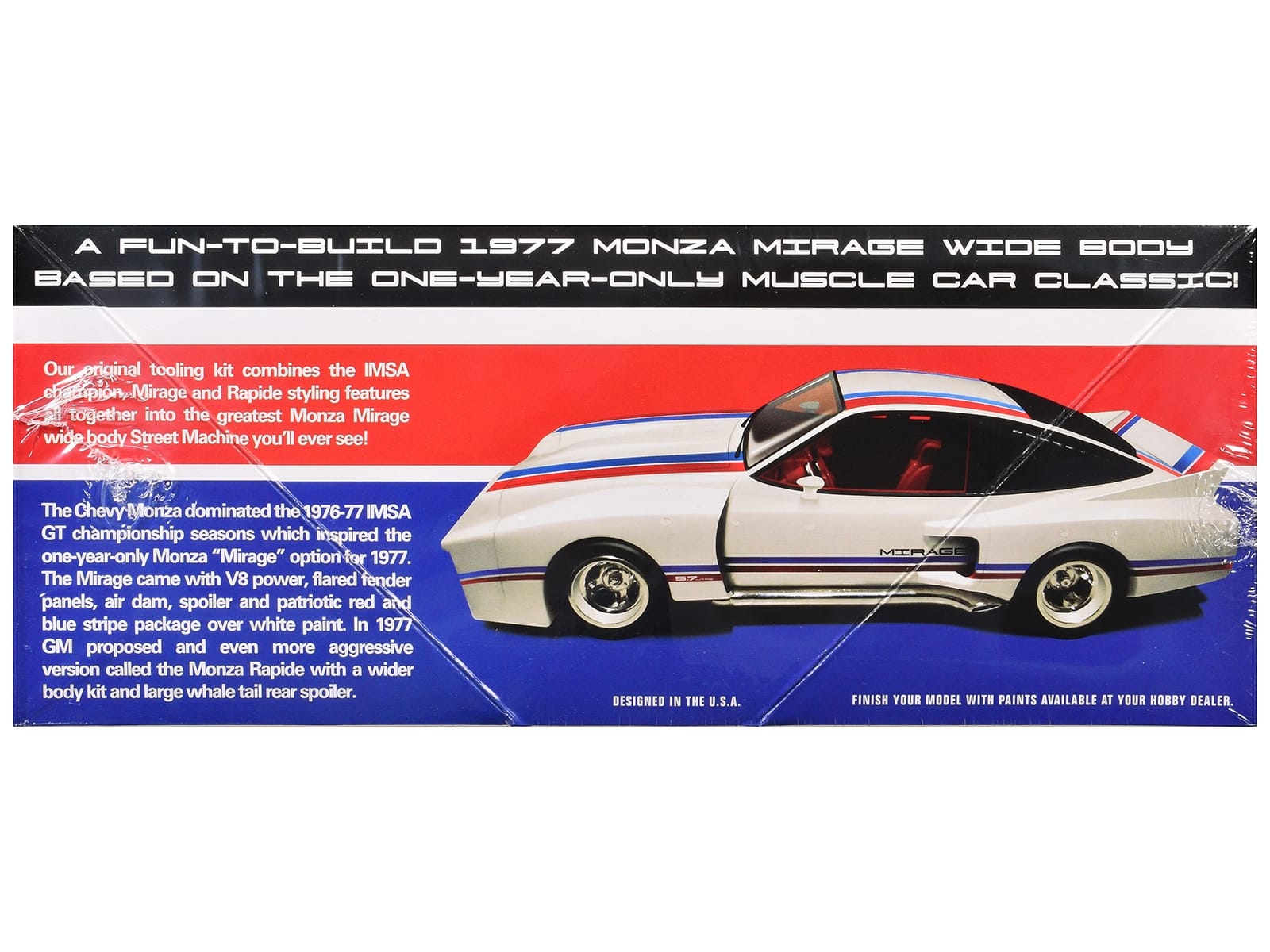 - Brand new 1/25 scale plastic model kit of 1977 Chevrolet Monza Mirage Wide Body “Street Machine” (Skill 2) 1/25 plastic model kit by AMT.
