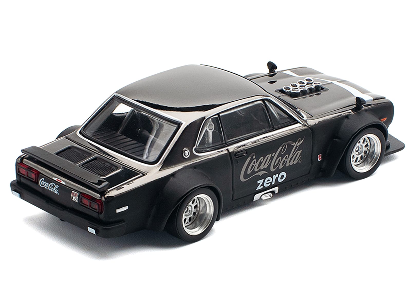 - Brand new 1/64 scale diecast car model of Skyline GT-R V8 Drift “Hakosuka” RHD (Right Hand Drive) “Coca-Cola Zero” Dark Chrome and Black die cast model car by Pop Race.